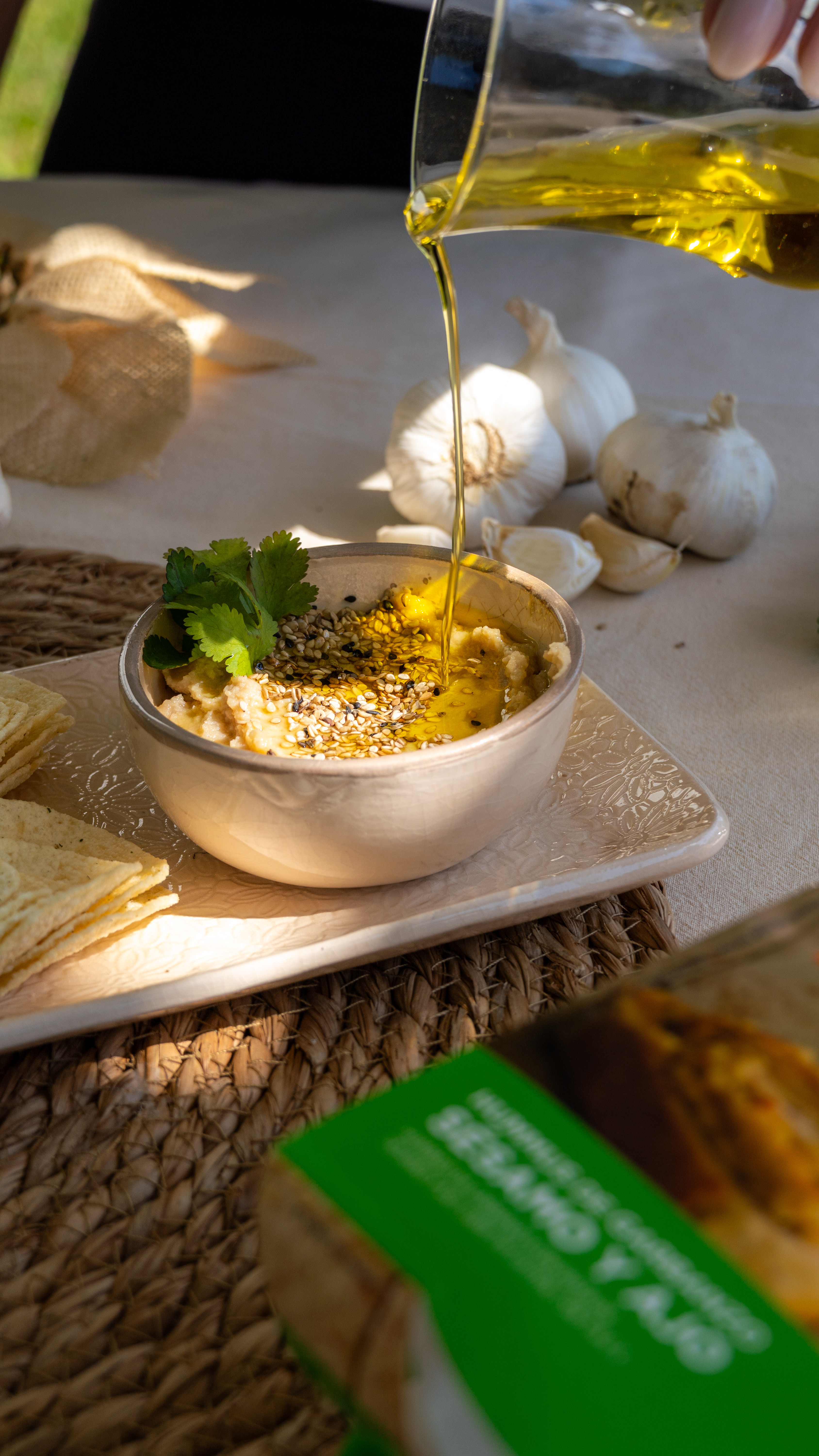 La combinación perfecta entre un hummus cremoso y ají molido para picadas, wraps y bowls. Ideal para dipear, acompañar platos y darle personalidad a cualquier comida.